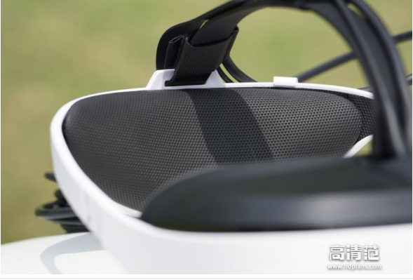 (三)主机部分:E3整体设计非常轻巧,黑白相间的颜色搭配很大气。头盔重 297克左右,佩戴时很轻,很舒适 。大朋的LOGO启动时会为蓝光色,颜控的最爱,有质感。外观上整体采用了流线型设计,一方面是为了美观,另一方面是为了防止磨损。通过观察大朋E3细节部分,工艺还是不错的,比上一代产品E2有了明显的提高,相对国内良莠不齐的部分VR产品,也有了质的提高。头盔顶部的两条线,一条是一体式的HDMI视频线和USB数据线,另一条则是音频线,需要自行购买耳塞或耳机插入3.5MM接口。