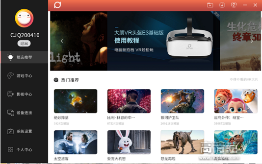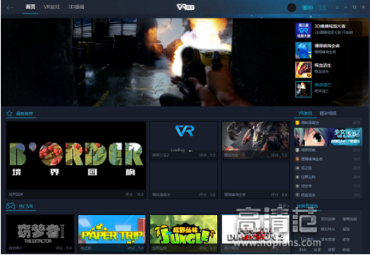 另一个软件是VRONLINE,中文名称是VR助手,这个软件适配绝大多数主流虚拟现实头盔,整合了市面上大量游戏资源和电影资源,内容上很丰富。我打开游戏,还有让人脸红心跳的VR女友游戏,还有一些激烈的射击游戏,基本上你想要的都有了。