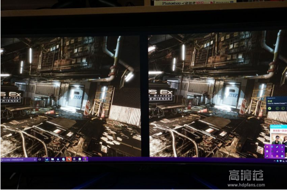 现在就大朋助手推荐的第一个游戏《杀出重围:人类分裂》的VR场景游戏进行测试,这里可以展示大朋VR最强画面效果,调整画质参数到最高。不得不说,E3的清晰特性给游戏体验增色不少,高清画面代入感极强。