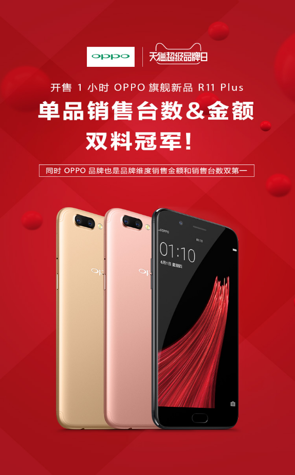 开售1小时 OPPO R11 Plus夺天猫销量及销售额双第一