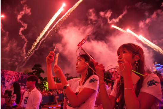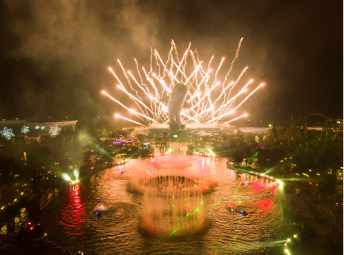 现场慕名而来的数万名游客挥舞着手中的闪光灯,与欧洲精英导演团队一起,齐齐大声倒数,共同“点”亮这一场颠覆想象的全新大型夜场汇演。全新“海洋保卫战”全程采用实景特技,首次将大型无人机演出引入主题乐园,完美结合无人机、烟花表演、激光秀、喷泉汇演、水上飞人、摩托艇特技六大元素,逼真的海空大战赢得全场的惊呼和掌声!