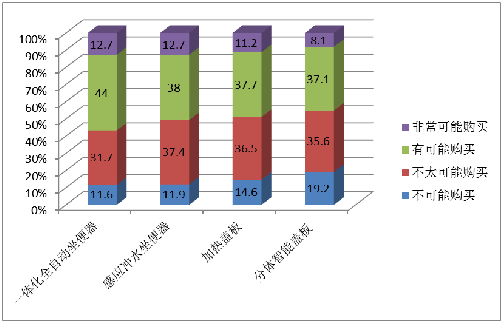 另外,在有意向购买智能马桶的人群中,对一体化的智能马桶有购买意愿的用户占56.7%,加热盖板马桶的占48.9%,分体智能盖板马桶占45.2%。由此可见,对于大部分待装修用户而言,外观时尚大方的一体化智能马桶更受青睐。