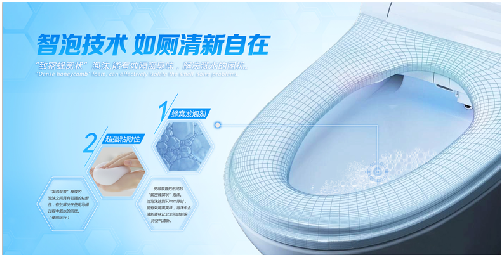 当马桶座圈上的感应装置感应到人的体温后,发泡剂即通过发泡装置产生致密蜂窝状的泡沫到马桶胆包内,当泡沫达到50mm厚时,泡沫之间较强的粘附性开始发挥其功效,一方面起到缓冲作用防止溅水,另一方面隔离臭味,让卫生间时刻保持空气清新,同时还能杜绝污物所造成的“辣眼睛”场面,简直是智能马桶技术的突破性发展。