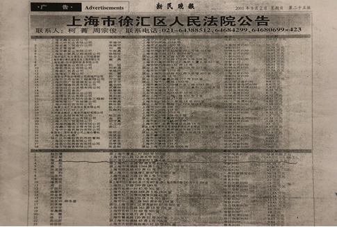 据悉,陶毅隐匿之后,徐汇区法院依法将陶毅借贷纠纷欠款数额公布于2001年9月2日的《新民晚报》上。