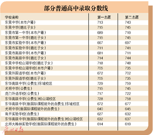 东莞发布首批高中阶段学校录取分数线