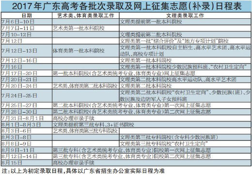 根据广东省教育考试院的安排,2017年广东高考的录取工作于7月6日至8月15日期间进行,省考院为此发布了详细的录取日程表和防范录取诈骗提示。