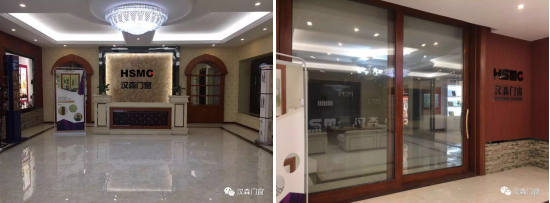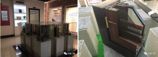 走进展厅,首先映入眼帘的是大气的形象台,汉森门窗 —“HSMC”的logo展示,令人印象深刻。