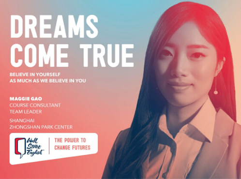 故事就这样开始。在安逸的环境待久了,一定向往旖旎的阳光。所以要寻找一份不安分。Maggie来华尔街英语学习前,有一份稳定又令人艳羡的工作。波澜不惊的生活注定要拥有一番改天换地的变幻。同一个时空下,职业身份的转变需要的不仅是勇气,而更加是对笃定人生的热爱和前行方向的坚定。在另一片天空发现新的自己,发掘更大的潜能,人生可以矢量改变未来的航向标,逆风起飞,盘旋直上。