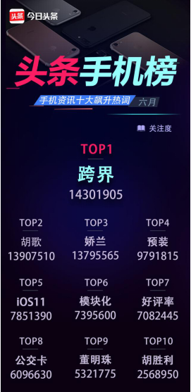在头条手机资讯十大飙升热词排名中,“跨界”“娇兰”“好评率”的上榜起因是OPPO R11与法国娇兰的跨界合作。