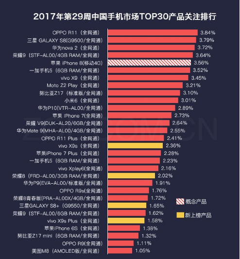 由此可见,OPPO R11凭借精美的外观和强大的手机性能,获得年轻用户的认可。而此次OPPO R11在ZOL2017年第29周中国手机市场TOP30产品关注排行榜中夺冠,再次证明了OPPO R11强大的市场影响力。
