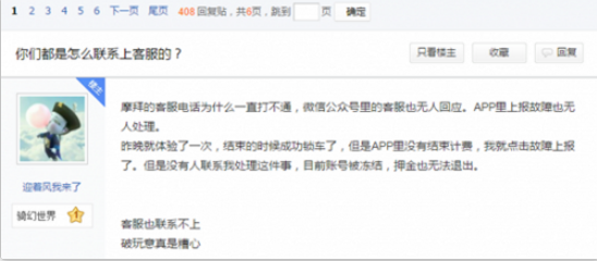 苍蝇不叮无缝的蛋。很多摩拜用户被冒牌客服诈骗,核心原因是他们不知道怎么联系真客服。有网友评论道,“按摩拜app提示的400电话咨询,结果连续打了十多次,永远都语音告诉你座席全忙,我怀疑那也是一个假的客服。”