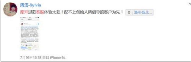 7月16日,一位名为“周洁-Sylvisa”的温州用户则表示:摩拜退款客服体验太差!