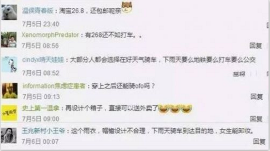 消息一出,摩拜雨衣就遭到了摩拜用户以及媒体的强烈吐槽。