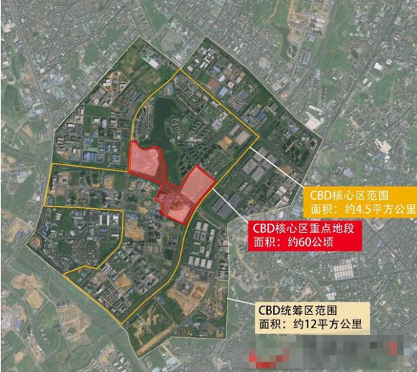 CBD统筹区约12平方公里,CBD核心区约4.5平方公里。其中,CBD核心区重点地段以CBD内松山湖大道两侧的未开发与可改造的32.46公顷用地为核心,向周边街区进行适当拓展,总用地面积约60公顷。