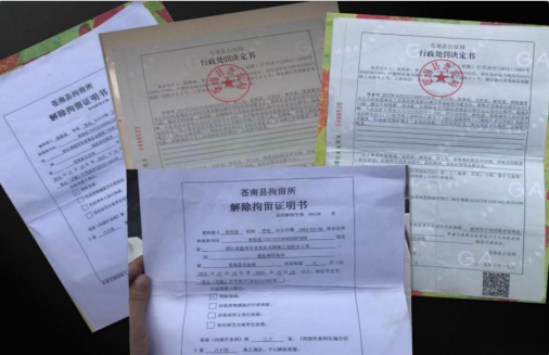 2015年10月19日,程修为、吴作好等十几名养殖户代表,因几经走访上级领导无效而在政府单位门前拉横幅等行为来进行维权,对此政府保卫厅安保人员报警,于当日将程修为、吴作好等十几名养殖户代表被当地公安局进行行政拘留。在法律面前,这样的行为确实不可,但是在维权的路途中,“上访无效”、“法院判决”都成为了绊脚石,作为公民的养殖户实在得不到维权的补偿才出此下策,“命根子”确让他们吃得牢狱之灾,政府间的相互推诿使得,补偿的获得几乎微乎其微。