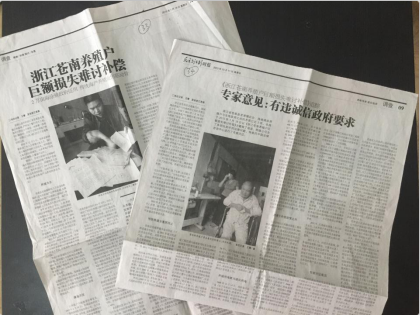 龙港于1984年建镇。建镇之初,在全国率先推行土地有偿使用、户籍管理制度和发展民营经济等三大制度改革,成功地走出了一条农村城镇化的路子,成为中国农民自费建城的样板,被誉为“中国第一座农民城”。就这样一座在全国都“出名”的镇子却出现了这样事情,让整个事件的问题随之又在冥冥之中增加了关注度。早在2015年1月18日和2015年10月11日在《民主与法制》时报,将其整个事件和发展经过以题目《浙江苍南养殖户巨额损失难讨补偿》和追踪报道《专家意见:有违诚信政府要求》进行报道,整张的篇幅,近数万字的报道将事情说的明明白白,时至今日又两年过去,所报道的事情依然无人问津,政府的态度让维权者无奈,只能继续上访维权。