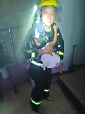 消防队班长不顾自身安危 摘下氧气面罩救出被困女童