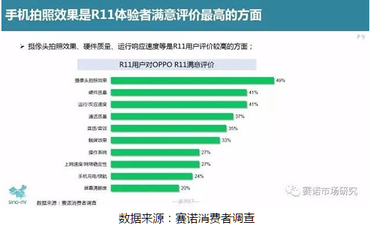 此外,OPPO手机的拍照效果是体验者满意评价最高的。在赛诺消费者调查出具的一份报告中显示,有49%的用户对OPPO R11的摄像头拍照效果表示非常满意。其采用前后2000万像素摄像头、与高通联合定制优化的旗舰影像处理器和针对性的软件优化,为用户带来更清晰的拍照体验,更唯美自然的人像模式和更加平滑真实的双摄变焦。