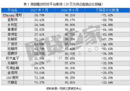 限额令出台近一年 积木盒子、金信网、PPmoney限额整改较好