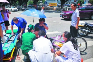 8月7日中午12时许,烈日当空,62岁的黄奶奶骑着电动车载着孙女回家。行至莞城运河东三路博厦桥路段准备过斑马线时,黄奶奶被一辆小轿车的后视镜刮倒在地,头部、脚部都受了伤。7岁的孙女吓坏了,拉着奶奶的衣袖哇哇大哭。小轿车女司机见状惊慌失措,一时不知如何是好。