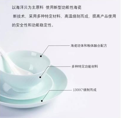 生物海瓷餐具生物海瓷餐具具有易清油、活化水和抗菌功能。可快速分离油和瓷器,用清水冲洗带走油污,不用洗洁精等化学试剂,彻底避免餐具的二次污染。