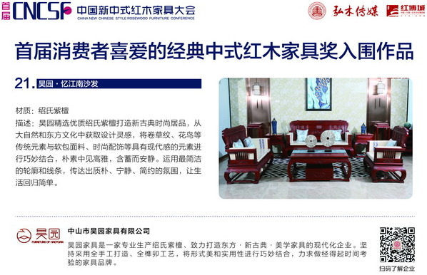 昊园家具《忆江南沙发》斩获“首届消费者喜爱的经典中式红木家具奖·金奖”