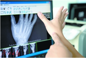 汪医生查看患者的检查报告。他说,作为一名手外科医生,不但要对专业精益求精,还要有强烈的职业操守,认真负责对待每位病人、每宗病例。(记者 钟宏连 葛宇飞)(来源:广州日报)