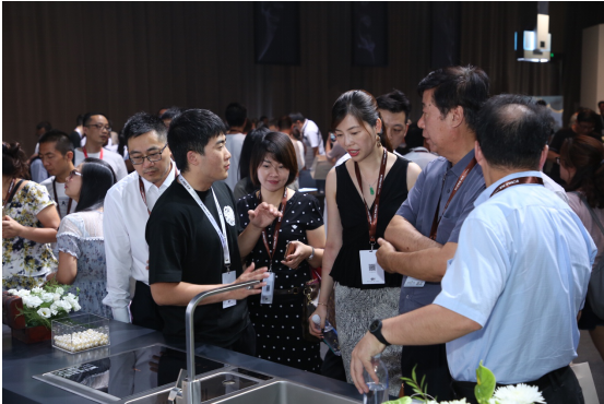 (图片说明:发布会现场,嘉宾们对于方太水槽洗碗机新品Q7产生了极大兴趣)