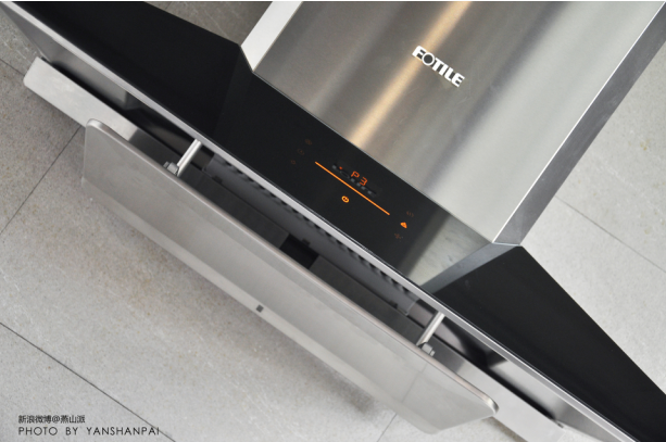 当然,我们也可以通过档位切换来手动调节蝶翼板的高度,其中P1和P2档蝶翼板的高度为下降至距集烟腔8cm,P3和P4档位下降至距集烟腔12cm,而且值得一提的是在各档位上,风速的大小也会根据油烟量在所处档位的范围内自动调节,以提升排烟效果。