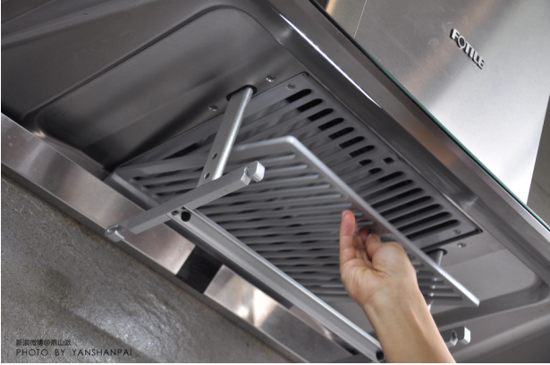 为了减少进入通风管道内的油烟,方太智能升降油烟机采用了双层净畅过滤设计,拥有两层过滤网,外侧过滤网同样采用易拆设计,内侧过滤网为螺钉固定。值得一提的是,无论是蝶翼板还是过滤网,都采用了纳米疏油涂层设计,更易擦洗。