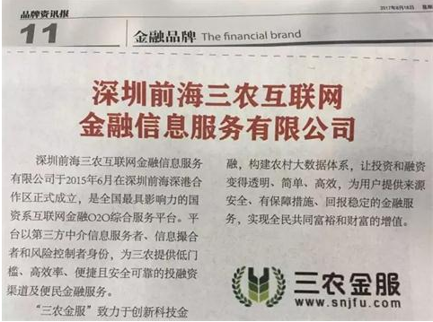 三农金服登上峰会周刊品牌资讯报