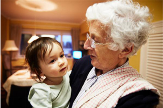 爷爷和奶奶也喜欢经常对着孩子说,慢点跑,别摔着。