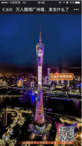 通过线上H5,“小蛮腰”在朋友圈里变成了许愿墙。粉丝们只要把自己的许愿编辑成文字,就可以让许愿爬上“小蛮腰”,帮你表白男神女神,帮你和爱人高科技式“虐狗”。活动当天,“小蛮腰”许愿墙在朋友圈形成了“地毯式轰炸”,七夕抢镜,舍我其谁?