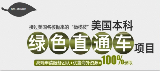 同时,学美教育在其官方网站的“成功案例”栏目当中,针对该公司力推的“美国本科绿色直通车项目”也打出了100%录取的宣传口号,并特别强调其所拥有的“优势海外资源”。