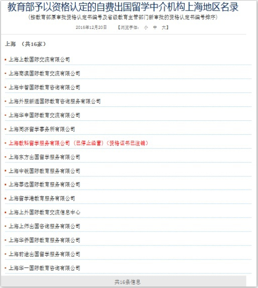 然而事实上,在教育部公布的上海地区出国留学中介机构名录当中,并未包含学美教育的身影,也即学美教育所声称的“建立与维护与国际院校合作关系”,是在不具备相关资质条件下的违规经营。