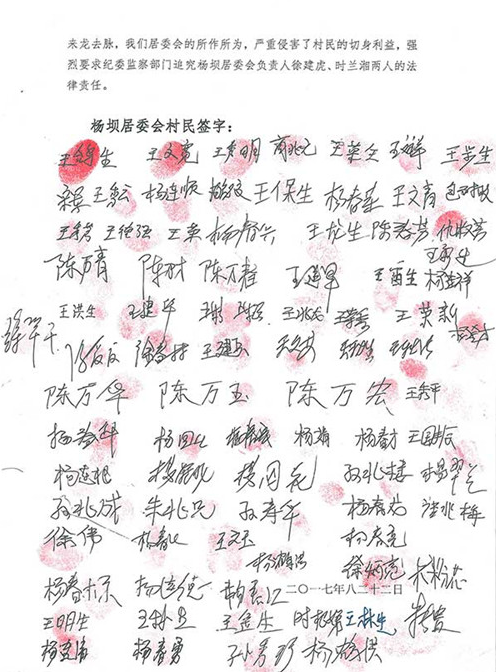 (图:盐城市盐都区潘黄街道杨坝居委会部分村民签字)