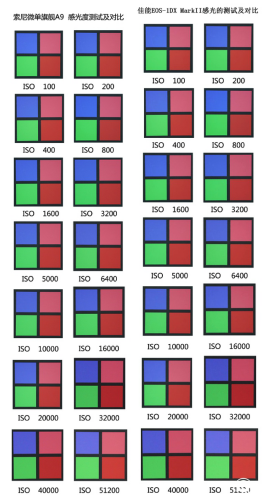 索尼微单旗舰A9VS 佳能1DX II感光度测试及对比