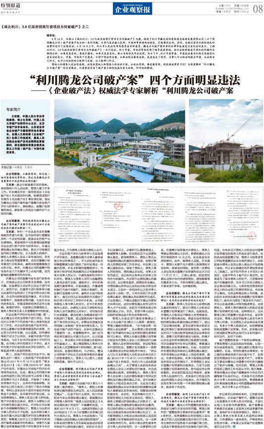 王欣新教授:"利川腾龙公司破产案"四个方面明显违法