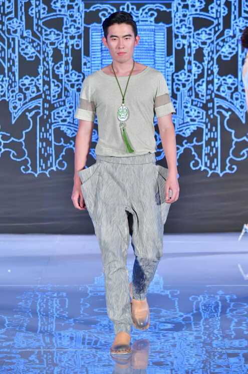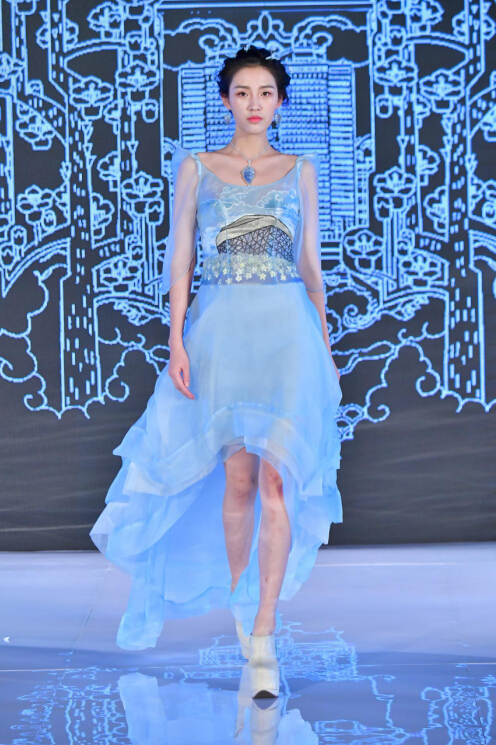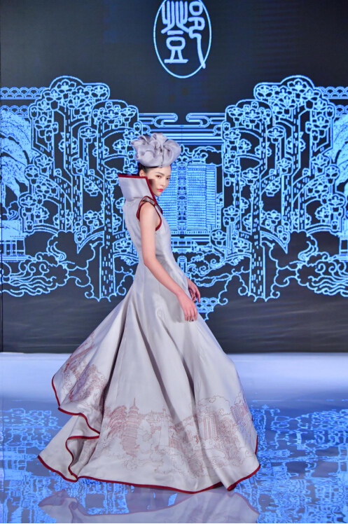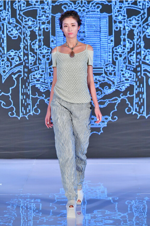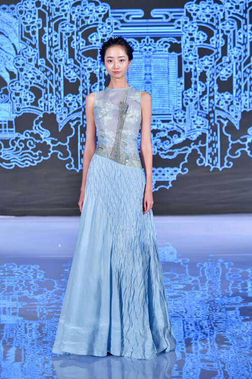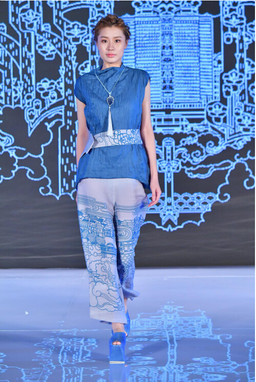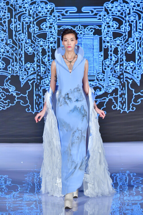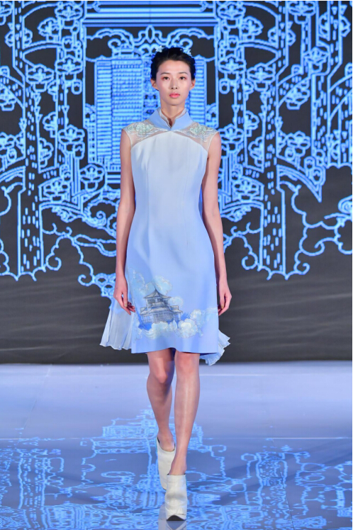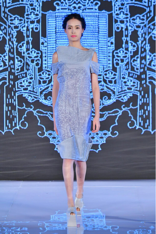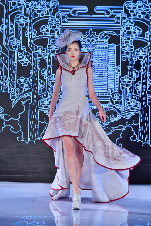 具有厚重的人文底蕴及鲜明的岭南文化印记的“三雕一彩一绣”,是我国传统工艺美术及“岭南九遗”的佼佼者,列入国家级“非遗”传统技艺名录。剔透玲珑的广州玉雕;洗染细腻的广彩;丝丝入画的广绣;与广州地标性建筑同时绽放于邓兆萍本季的发布作品中。服装巧妙汲取广州塔、广州大剧院、广东省博物馆等现代大都市地标建筑的造型元素和流线因子,以数列的方式融合于现代风潮的服装结构中,呈现出独特的立体效果;从浅蓝、米灰、淡绿渐变到岭南红,优雅讲述着广州城日出日落一天的色彩变化;气象万千的广府百景呈现在高科材料聚酰亚胺纤维与棉、麻、丝、香云纱等交织而成的新型面料上,美轮美奂,自然流畅中给人们带来感官上的视觉冲击,令人耳目一新。“思变、沟通、包容、敢为天下先”的人文特征,早已成为“南国明珠、千年商都”的文化基因,这种基因已深深浸透在邓兆萍与岭南文化休戚与共的血液中。睿意创新,艺术与时尚交融的作品在模特优雅的步履中鲜活地呈现在您的面前,此刻的您是否如我般:活在岭南,乐享其中!
