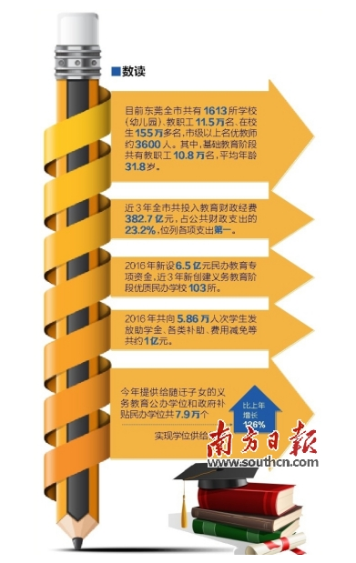 南城阳光七小学生中随迁子女占七成。梁维东表示,东莞是一座包容的城市,来到东莞工作生活就是“一家人”,今后东莞将进一步提升教育水平,为广大市民提供更优质的教育服务。(来源:南方日报)