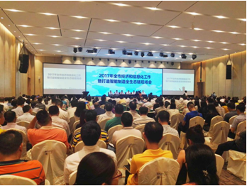 东莞市经济和信息化工作暨打造智能制造全生态链现场会举行。图为会场瞄准主攻方向 全面实施制造业生态发展战略与会人员现场参观了广东长盈精密技术有限公司和智能制造系统服务集聚基地展厅。会上,东莞市领导为“东莞市智能制造系统服务重点单位”和“东莞市智能制造专业技术培训基地”授牌,广东华商智造技术服务有限公司、沈阳新松机器人自动化股份有限公司、广东智能智造研究所等7家企业现场被授牌;相关企业、机构签署了智能制造全生态链合作协议,助力东莞打造智能制造全生态链。