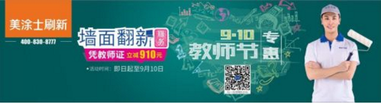 即日起至9月10日,凭教师证即可领取910元美涂士刷新幻彩新家券(仅限北京、深圳、合肥、成都地区)。