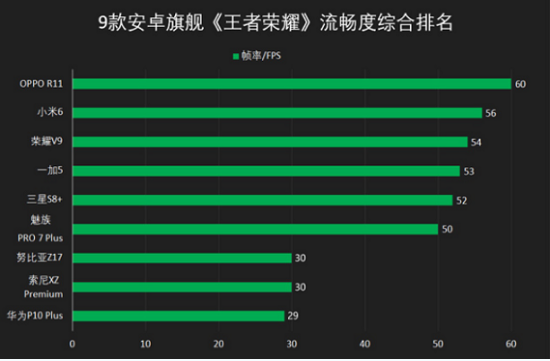由于OPPO R11王者荣耀周年限量版尚未正式发布,一些细节尚不清楚。不过,此前,PConline挑选市面上9款热门旗舰,发布了《决战王者峡谷》王者荣耀对比横评,无论是60帧的帧率,还是帧率稳定性,OPPO R11都是其中最出彩的一个。直观感受就是,用OPPO R11玩王者荣耀,更流畅、更平滑。