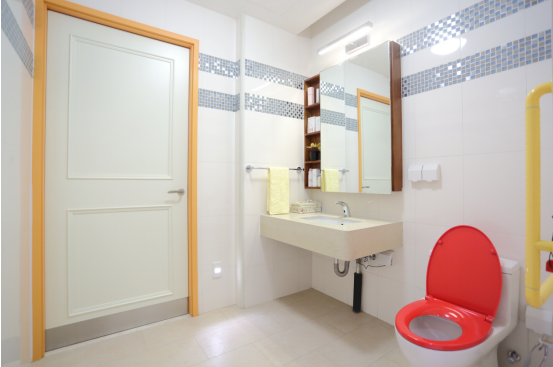 燕园记忆障碍区,方便失智老人记忆的红色马桶盖和黄色扶手