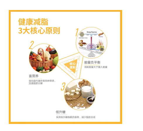脂老虎为用户提供的营养配餐遵循“能量负平衡、低升糖、富营养”的三大原理进行健康人体营养的模拟组合,从而保障用户可以通过营养配餐获得身体所需的营养物质和元素。很多观点认为,肥胖主要是因为营养物质摄入过多,但是其实大部分肥胖是由于在膳食中缺少脂代谢所必须的各种营养物质而导致的营养不良性肥胖,所以这个时候不仅仅不能管住嘴,反而需要通过脂老虎营养配餐强化获取脂代谢所需的各种营养成份,这样可以有助于抑制脂肪合成,加速脂肪的分解。同时,脂老虎低热量、低升糖的营养配餐,适宜代替或配合日常膳食食用,能帮助人体摄入丰富的营养,其包含数十种营养素及脂肪代谢所需数十种酶和辅酶,可以帮助身体有效的消耗脂肪。
