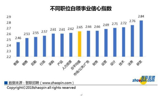 智联招聘发布了《2019年白领秋季跳槽及职业发展调研报告》(以下简称报告),全方位揭秘2019年秋季白领的事业发展行动和预期。报告显示,白领事业信心指数2.65,低于去年,而白领跳槽意愿高于去年,近六成白领已经付诸行动;95后跳槽更在意薪酬,70后跳槽更重前景;近六成白领考虑加入城市服务行业,民宿房东最受青睐;近七成白领看好5G时代。