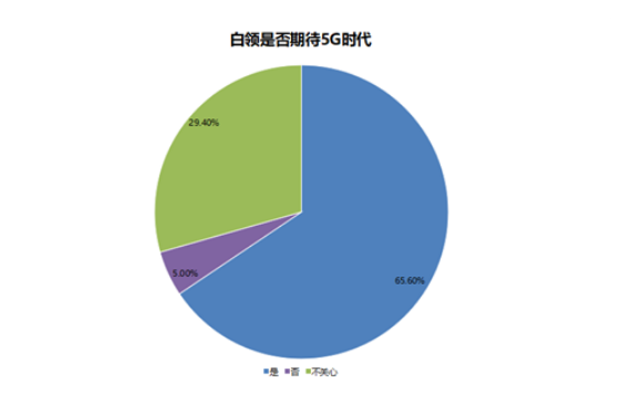 随着5G商用的到来,白领们的工作方式将发生巨大改变,远程办公、异地协同、灵活的工作时间等或有机会成为主流工作形式。调研显示,65.6%的白领期待5G万物互联时代的到来。