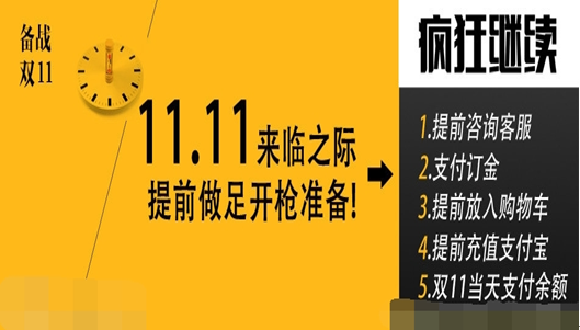 集尚商城教你如何驰骋双十一,在双十一预热期:1、提前罗列自己的购买清单,敲定备选品牌。没事的时候可以提前把自己想买的东西比性价之后收藏;2、提前领优惠券享折上折,可以参加顶红包等各项优惠活动;3、支付宝钱包须鼓起!提前几天充进支付宝里,到时候直接用支付宝余额支付,输个密码几秒钟就完事;4、电脑调好,网速一定要快!11日零点正式开抢,一般从零点开始几个小时会有活动。