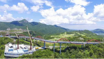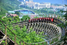 “木质过山车” 落差40米,时速97公里。列车运行穿梭于实体山坡与山谷之间,木质的过山车在运行中会发出碰撞声,让人感觉更惊险更刺激。