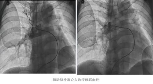 在与家属充分沟通后,心内科介入团队决定为他开展“肺栓塞局部溶栓与碎栓术”,也就是碎掉和溶解掉血栓,打通肺部血管。